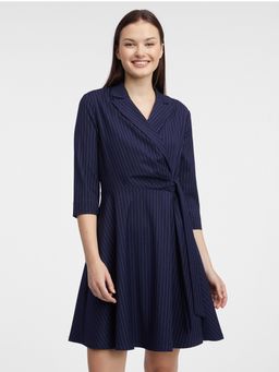 Tamnoplava ženska prugasta haljina na preklop ORSAY